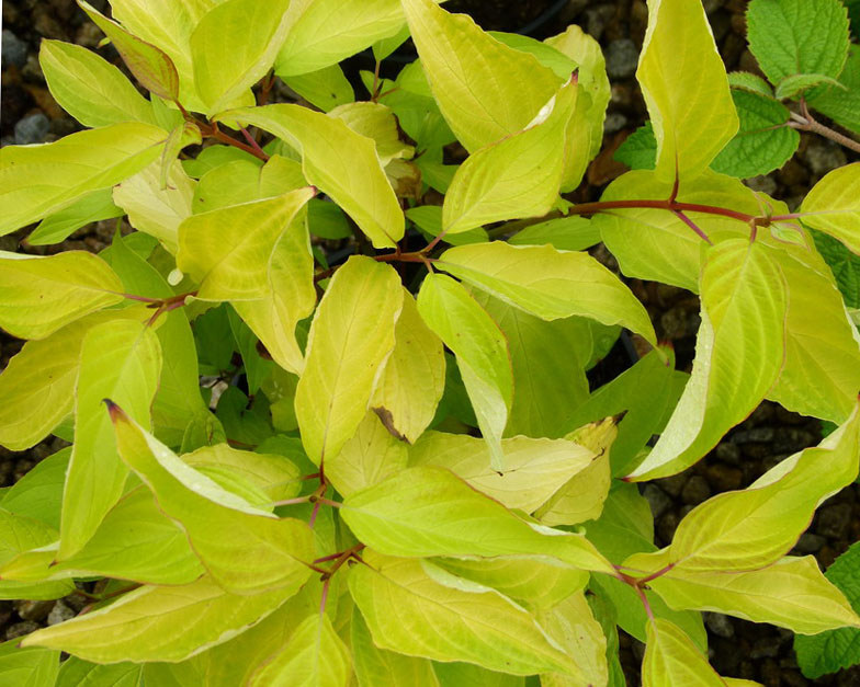 Дерен белый Ауреа представляет собой кустарник, способный вырастать до 3 м. Он отличается тонкими и гибкими побегами, направленными вверх. Встречаются и красно-бурого оттенка растения.Листья очень мягкие, чаще желтого цвета с матовой поверхностью. В осенний период их окрас меняется на красный.