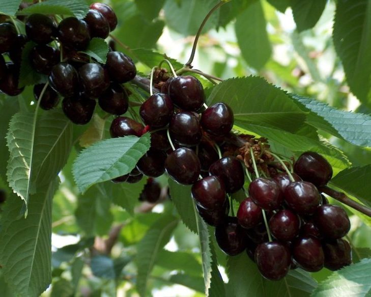 Ягоды вишни Брюнетки плотно прикреплены к плодоножке и не опадают при созревании.