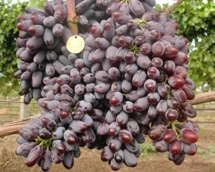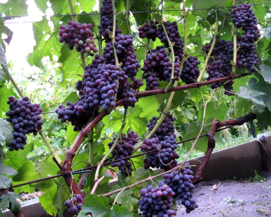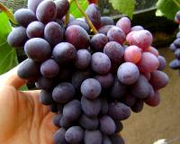 Этот сорт винограда называют “американским чудом”. Отличается он кустами средней величины и массой гроздей до пятисот граммов. По форме грозди цилиндро-конические, умеренно рыхлые. Что касается ягод, то они очень крупные для винограда: вес одной виноградинки может достигать семи граммов. По форме ягоды овальные, насыщенно розового цвета (могут быть даже красными). Ягоды, которые созрели полностью, могут быть темно-синими. Вкусовые характеристики “Кишмиш Юпитера” не подведут: он известен легким мускатным вкусом, мясистой и сочной мякотью и тонкой прочной кожицей. Что касается урожайности, то она стабильная и высокая.Стоит похвалить отличную морозоустойчивость этого вида: без особых повреждений “Юпитер” переживет морозы до минус двадцати семи градусов. Несмотря на то, что кожица у винограда плотная, растрескивания ему не характерны. Не боится ос. Неприхотливый, укрывать на зиму не нужно.