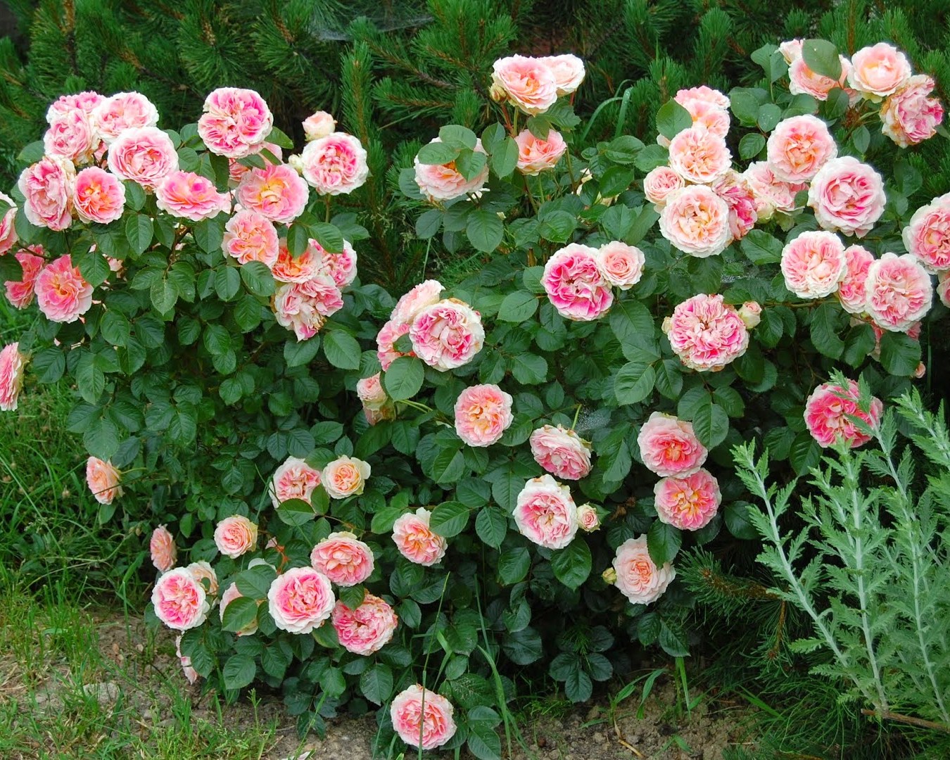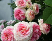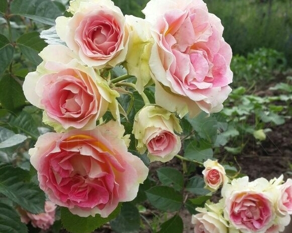 Широкие, очень сильно волнистые лепестки свернуты в центре цветка, так что темно-розовая внешняя сторона лепестков красиво контрастирует с нежно-абрикосовым реверсом. Цветки быстро раскрываются, они густомахровые и округлой формы, но почти никогда не показывают серединку. Лучше всего сорт показывает себя в теплых, сухих условиях. Желтый оттенок со временем выгорает, так что более старые цветки становятся бело-розовыми. Куст достигает 2 м при выращивании кустом, но побеги склоняются под весом кистей цветков ( в кистях обычно 3-9 шт), та что лучше выращивать эту розу на опоре. Листва устойчива к заболеваниям.Характеристики