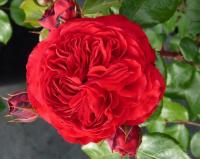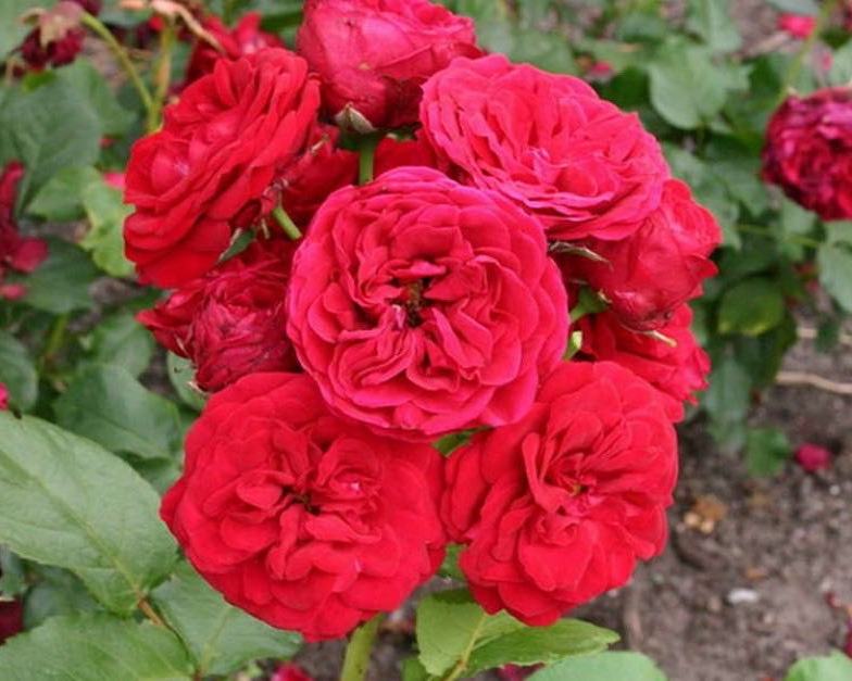 Выносливый сорт, цветки долго держатся, не выгорают. Обильное и продолжительное цветение. Цветки насыщенного темно-красного цвета, средних размеров, густомахровые со слегка волнистыми краями, устойчивы к дождю. Куст прямостоячий, до 50 см высотой, листва темно-зеленая, блестящая.Бутоны округлые. Цветки темно-красные, бархатистые, шаровидные, средние (6— 7 см), густомахровые (до 100 лепестков), в соцветиях до 20. Листья темно-зеленые, крупные, кожистые. Кусты среднерослые (50—60 см), компактные, густые. Цветение обильное. Зимостойкий. Чувствительный к мучнистой росе. Для групп, бордюров. (ГБС) Повторноцветущая.
